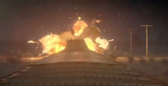 En tout cas, la ville est parcourue d’explosions en tous genres (je vous avais dit que J.J Abrams était lâché), puisque tanks, lances roquettes et mitrailleuses « se mettent à tirer seuls, tout est hors de contrôle ! » dixit un militaire hurlant dans sa radio. Ok, donc on va prendre l’exemple dans un char, véhicule qui a un canon à un coup, pour que tout le monde saisisse bien la situation.
