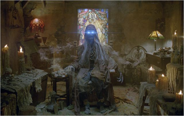 Chiron explique donc à notre héros que s’il le souhaite, il peut aller dans la petite maison au sein du camp où se trouve le bureau de Dionysos, et se rendre au grenier. Là, il aura des réponses.  Percy hésite un peu, parce que bon, hein, ça fait peur les greniers, mais comme c’est un ouf malade, il s’y rend. Et entre deux vieilles caisses de vaisselle, de fringues trop petites et de VHS (je vous rappelle que ces gens ont connu l’antiquité) de Xena la guerrière, il tombe nez à nez avec un vieux cadavre plutôt féminin qui s’anime à son approche et se présente comme… la Pythie de Delphes !