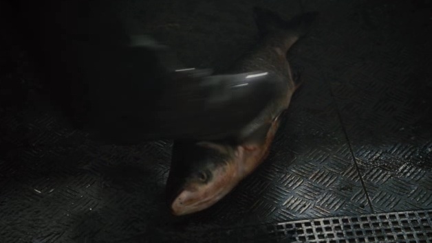 Poisson que l’un des cagoulés a utilisé pour intimider un ch’ti peu les rebelles, en l’éventrant avec sa hache.