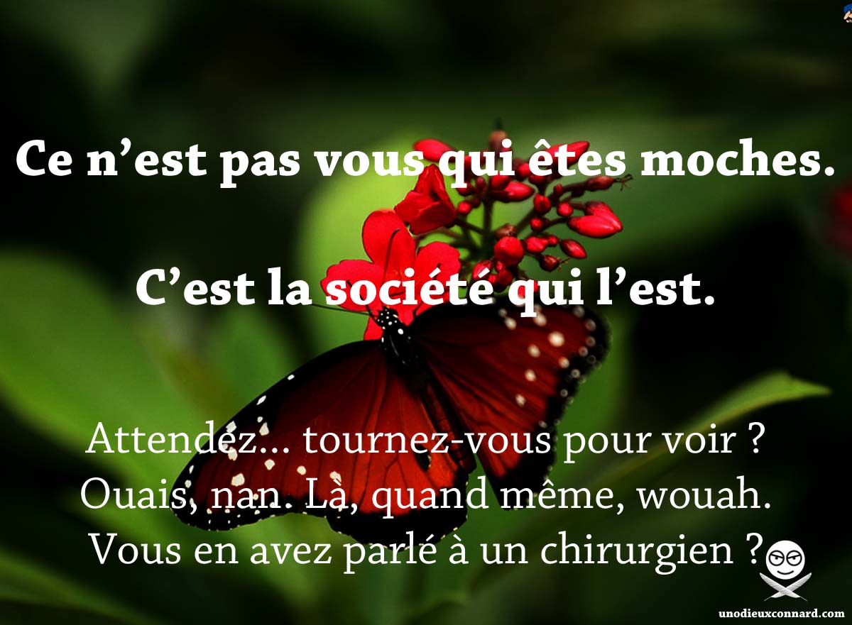 Image 6 : Comment savoir si vous êtes moche ? Postez une photo de vous. Si vous avez des likes et de bonnes blagues sur votre physique, c’est bon. Si vous n’avez que des commentaires eux aussi à base de « ma belle » ou « tombeur« , prenez rendez-vous avec votre ami du bistouri préféré.