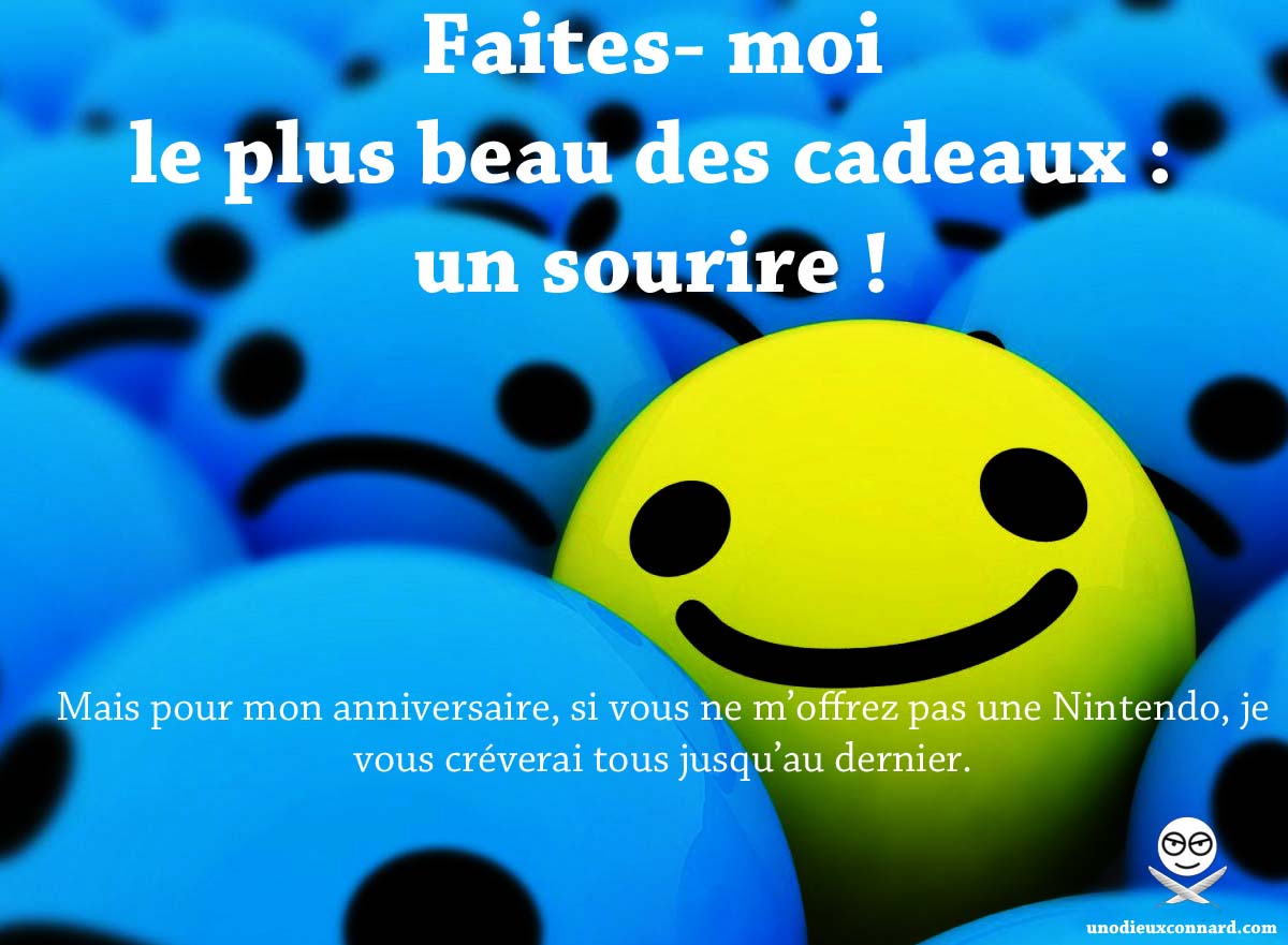 Image 8 : Les trucs sur les « cadeaux de la vie« . Franchement, à part du fric, de la coke et éventuellement, une invitation à une soirée pyjama d’étudiantes trop pubères pour leur propre bien, qu’y a-t-il de plus hypocrite que de mettre des choses intangibles sur la notion de cadeau ? Il suffit. Rappelez à ces gourgandins que leurs messages ne sont pas crédibles deux secondes au vu de leur attitude générale en situation de présents. Laissez-les malgré tout ensuite poster sur « Lé zipocrites j’en est marre alors que mwa mon plu grot défaul, c’et la frenchise !« . Ben voyons.