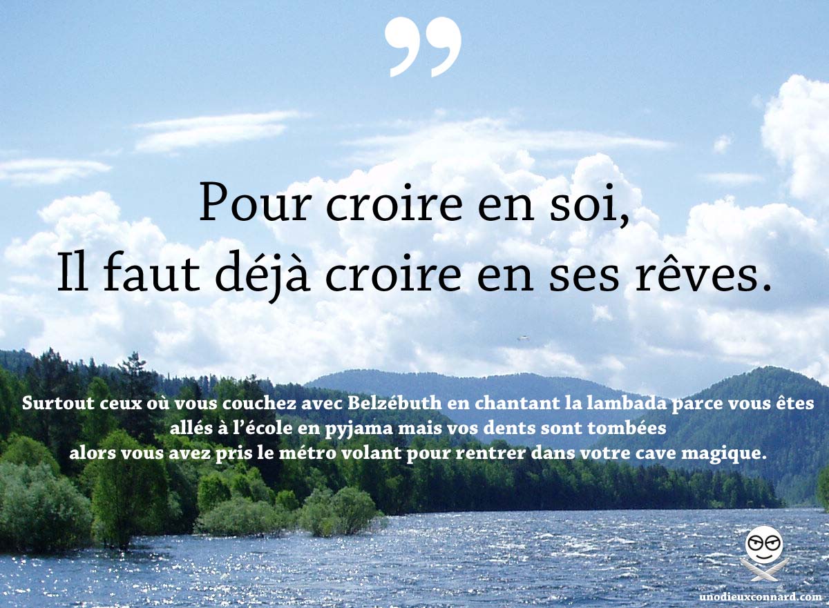 Image 5 : Les discours sur « Ouiii, il faut croire en ses rêves« . Déjà que vous ne vous souvenez pas de la plupart de vos rêves, si en plus vous devez y croire, ça devrait vite être le bordel, cette affaire. Cela dit, il est vrai que j’utilise cette même phrase à chaque fois que Diego me demande « Je pourrais toucher un salaire, patron ?« . Ah, quel taquin, ce Diego.