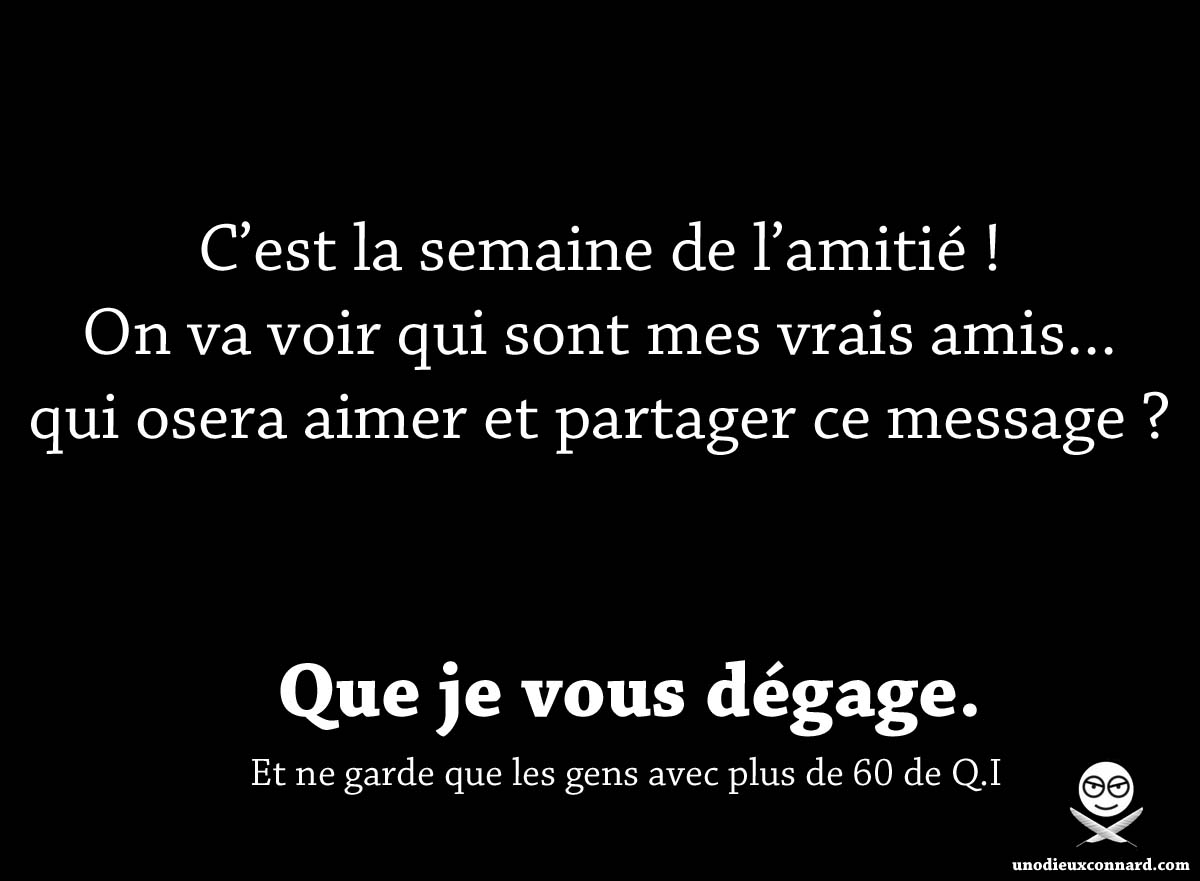 Je n’ai pas accès à FB au boulot, alors je le dis ici, histoire que personne ne sois surpris ce soir : Tous les connards qui vont vouloir jouer les petits futés et qui vont copier/coller l’une ou l’autre de ces réponses seront bannis de mes amis FB si jamais je m’en rends compte (et je vais surveiller). Merci d’être original dans vos troll.