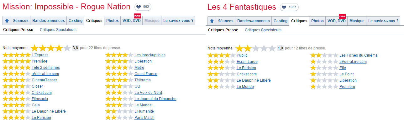 « Bon hé bien mon petit Diego, tu connais les esprits chagrins qui viennent me dire « Ouiiii, vous ne faites jamais de bon film » ? À 4 étoiles sur 5 de moyenne, avec autant de titres impliqués, Mission Impossible, doit être bien, non ?