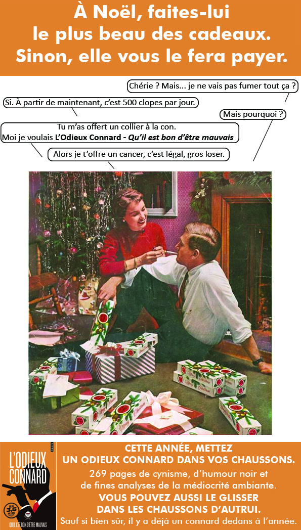 C’est marrant, la publicité originale « Offrez des clopes pour Noël » passerait moins aujourd’hui.