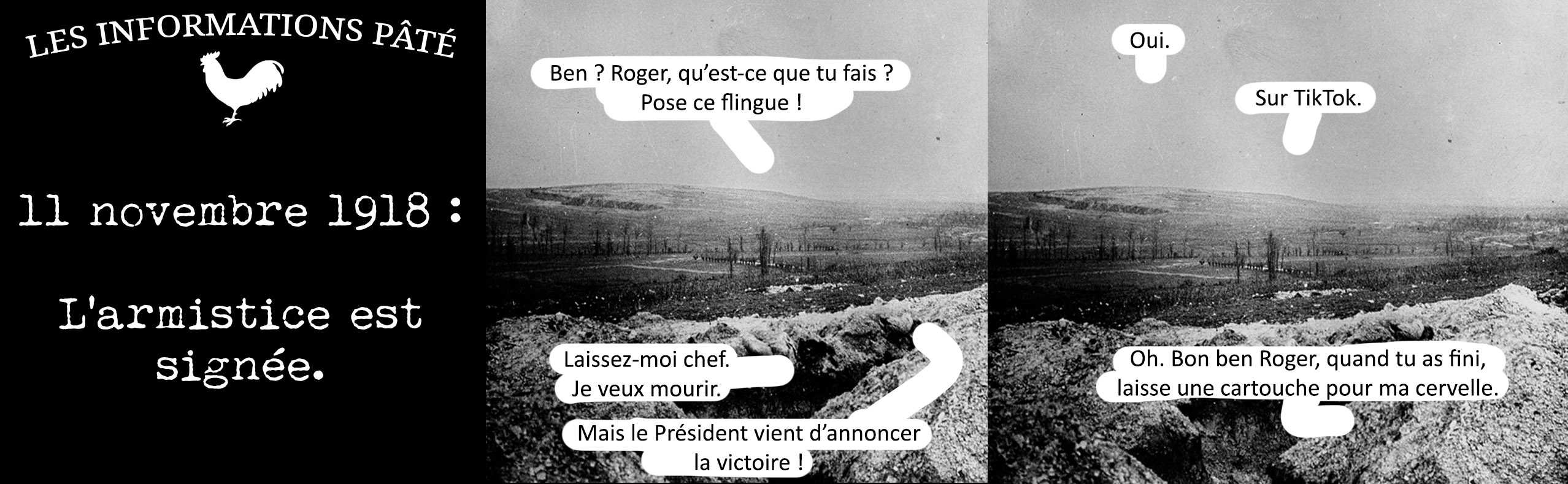 En revanche, hem, « l’armistice est signée », comment vous dire sans me prendre un coup pelle sur la nuque ?…