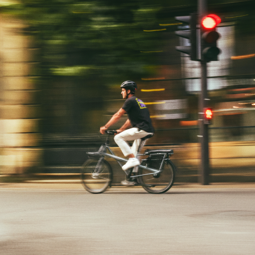 Cycliste urbain avec son ti casque, qui lui donne l’autorisation de griller absolument tout et tout le monde, pour arriver plus vite aux Enfers.